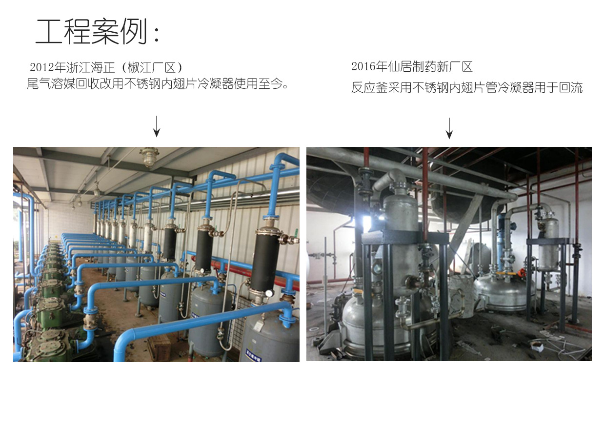 由河南意達(dá)換熱設(shè)備有限公司研發(fā)的“冷凝王”不銹鋼內(nèi)翅片管冷凝器,(有專利證書ZL2016 2 1448734.7)具有體積小、重量輕、阻力小、換熱能力大、熱交換充分的優(yōu)點(diǎn).廣泛應(yīng)用于氣液交換、混合氣體凝結(jié)、壓縮機(jī)氣體的后冷卻處理,氣體加熱等領(lǐng)域.氣體處理量從幾個(gè)立方到上千立方均可采用。該"冷凝王"材質(zhì)可制作304不銹鋼、316L不銹鋼、2205不銹鋼、純銅等,換熱面積從小于1平方到2000平方均可以做到??蓾M足不同領(lǐng)域的熱交換、蒸發(fā)、提純、尾氣回收。經(jīng)過(guò)多年來(lái)的上機(jī)運(yùn)行證實(shí),使用效果上佳、替換傳統(tǒng)的螺旋板換熱器、列管換熱器、板片式換熱器有顯著的優(yōu)勢(shì),其占地面積小、重量輕、安裝檢修方便、物美價(jià)廉是突出的不可比擬的優(yōu)點(diǎn)。能使生產(chǎn)車間整潔、空間超大、視覺(jué)舒服。
